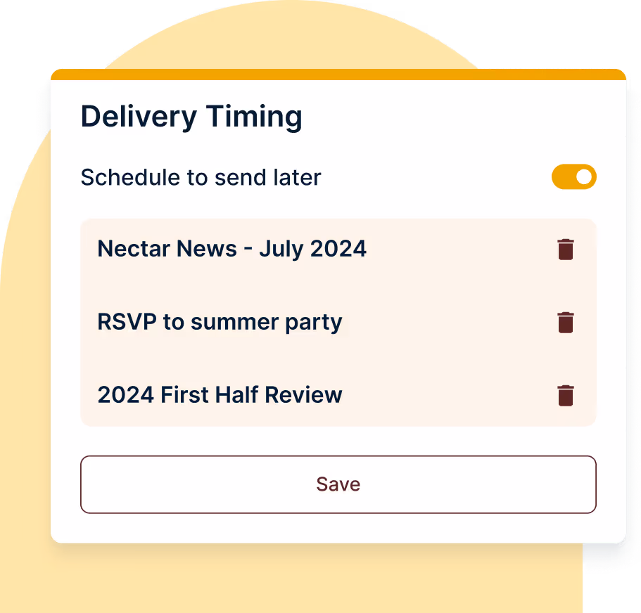 Managing team communications can be chaotic. Nectar brings order by coordinating messages, automatically syncing employee updates, and easy-to-manage campaigns. Maintain clear and effective communication.