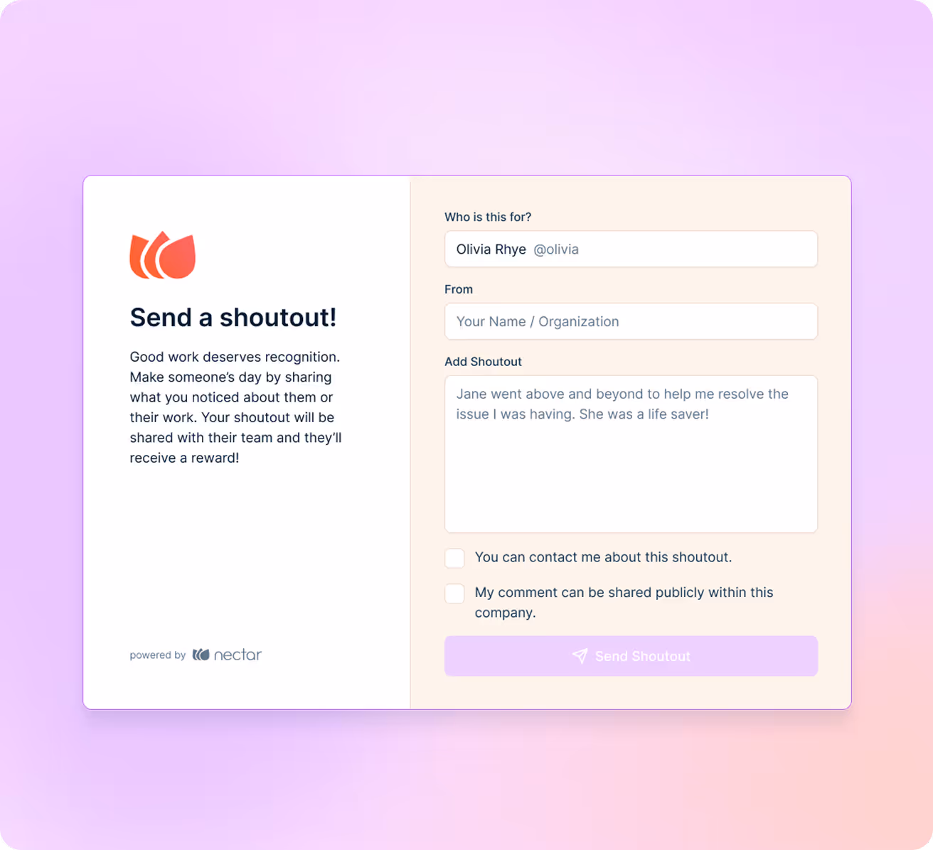 All recognition is fully integrated into the Nectar platform, making it easy to manage and rewarding for your employees.